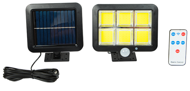 LAMPADA SOLARE CON SENSORE DI MOVIMENTO PIR/CREPUSCOLARE E TELECOMANDO CAVO 5M 30W