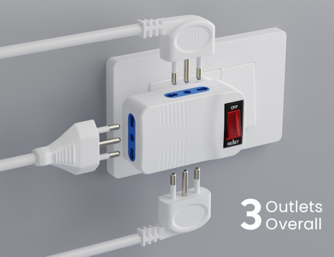 3 prese elettriche bipasso 10/16A per alimentare 3 dispositivi elettrici
