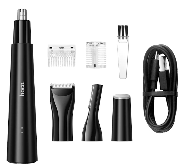 Il rifinitore per naso 3 in 1 HP37 è un dispositivo compatto e silenzioso che combina la rifinitura del naso, la modellazione delle sopracciglia e la cura dei peli del viso