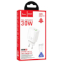 Caricabatteria Hoco con funzione di ricarica rapida e 3 porte: 2x USB-C e 1x USB. Ti consente di caricare rapidamente i dispositivi mobili. È stato realizzato con la tecnologia GaN.