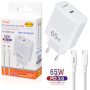 Caricabatteria con funzione di ricarica rapida e doppia uscita. Incluso un cavo da USB-C a USB-C 60W da 1m