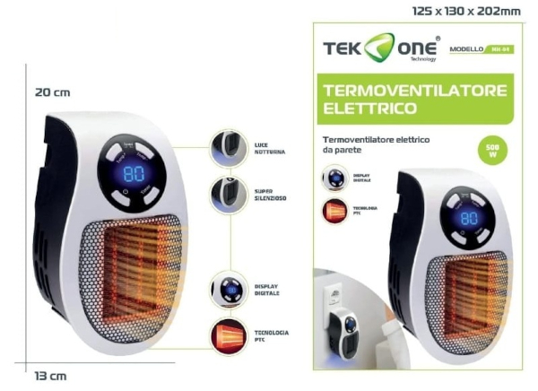 TERMOVENTILATORE ELETTRICO DA PARETE 500W 0000MH-04