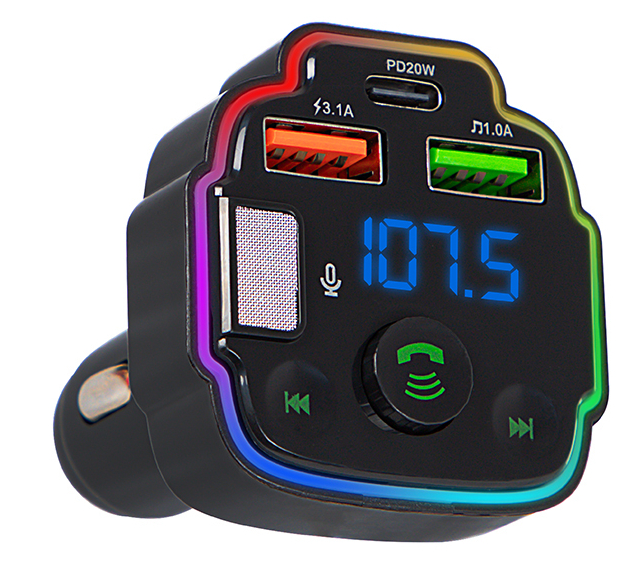 TRASMETTITORE FM BLUETOOTH 5.0 2 X USB + 1 X TYPE-C 20W RGB