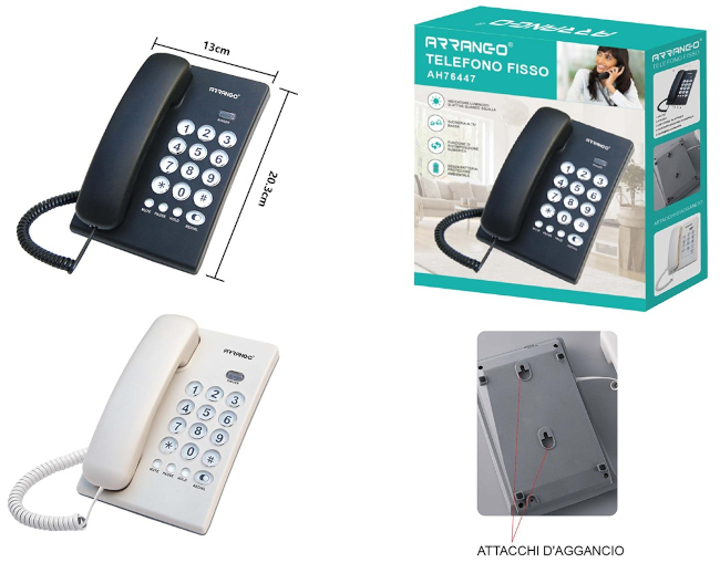 TELEFONO FISSO 10 NUMERI TASTI GRANDI BIANCO-NERO