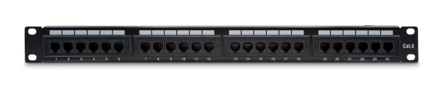 Patch panel da 24 porte RJ45 categoria 6, ideale per la gestione ordinata e performante delle connessioni di rete in armadi rack standard da 19". Perfetto per installazioni professionali in ambito aziendale o data center.