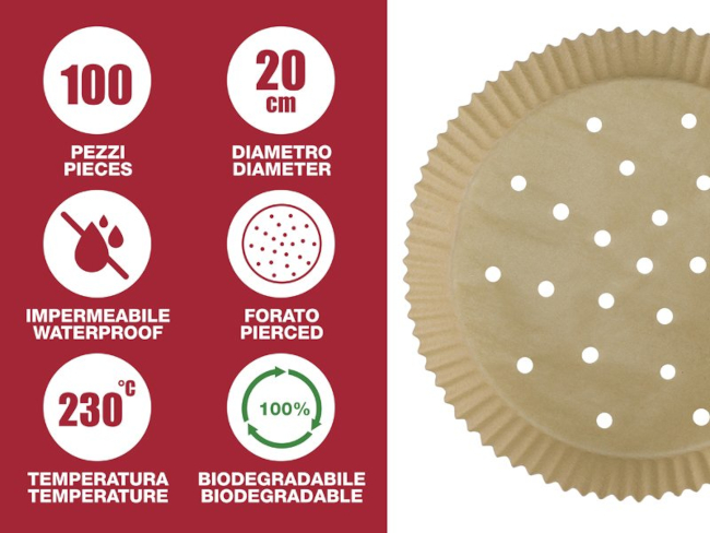 SET 100 PEZZI DI CARTA FORNO PER FRIGGITRICI AD ARIA - ROTONDI E FORATI