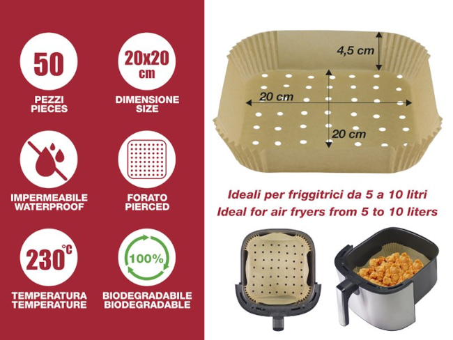 SET 50 PEZZI DI CARTA FORNO PER FRIGGITRICI AD ARIA - QUADRATI E FORATI