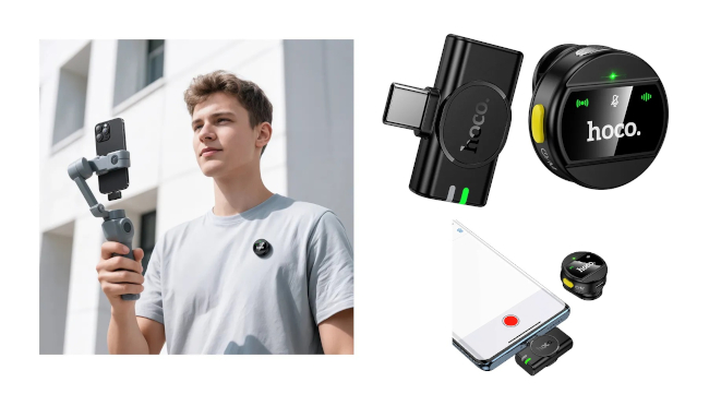 Il microfono wireless Hoco L21 con ricevitore type-c è una soluzione compatta e moderna per la registrazione e lo streaming sui social