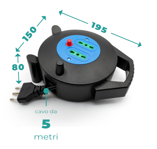 PROLUNGA CON AVVOLGICAVO DA 5M CON 2 PRESE 10/16 A 2P+T BIPASSO
