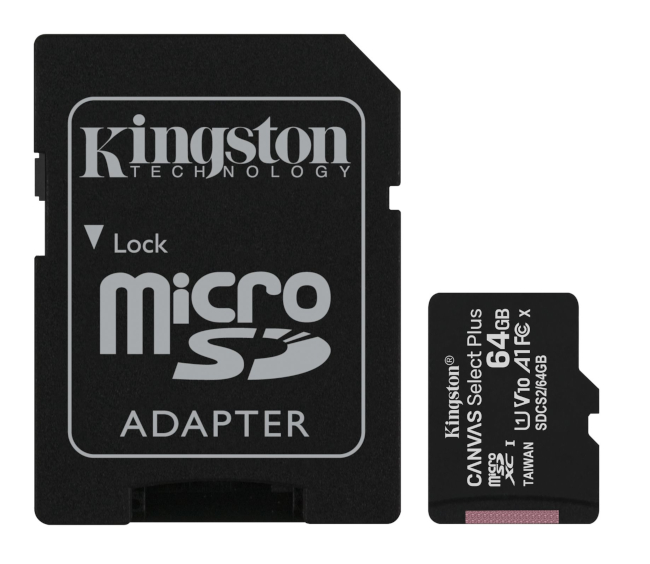 MICRO SD HC KINGSTON 64 GB CON ADATTATORE SD CANVAS SELECT PLUS CLASS 10