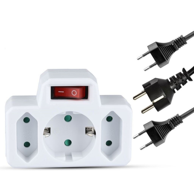 ADATTATORE CON 3 PRESE FRONTALI + SCHUKO E INTERRUTTORE