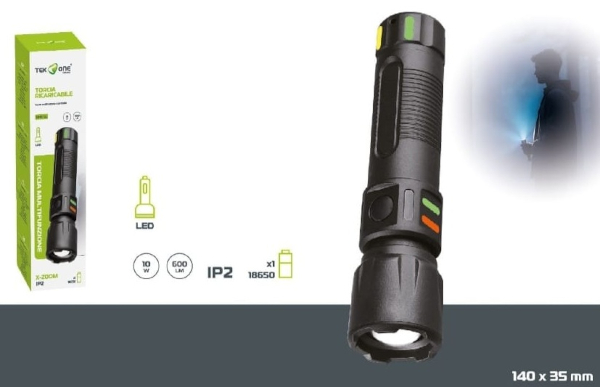 TORCIA LED RICARICABILE 100M 10W 1200MAH NERA TO-BL711