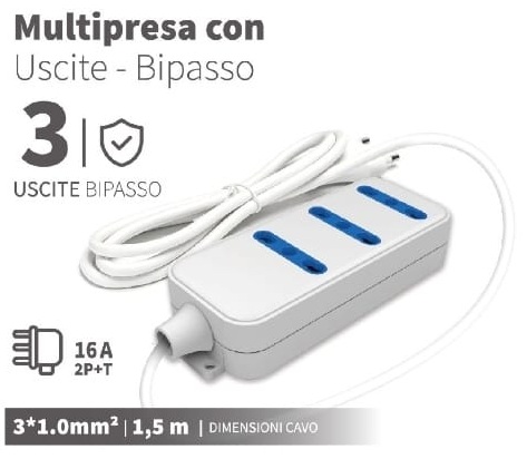 MULTIPRESA A 3 USCITE 16A 250V MAX 3680W 1.5M