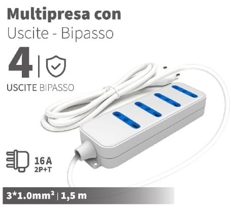 MULTIPRESA A 4 USCITE 16A 250V MAX 3680W 1.5M