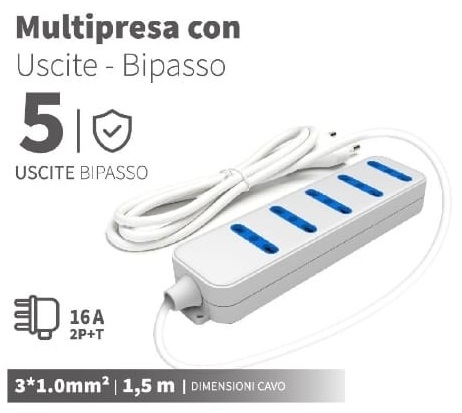 Numero di uscite: 5 prese bipasso 16A 250V
