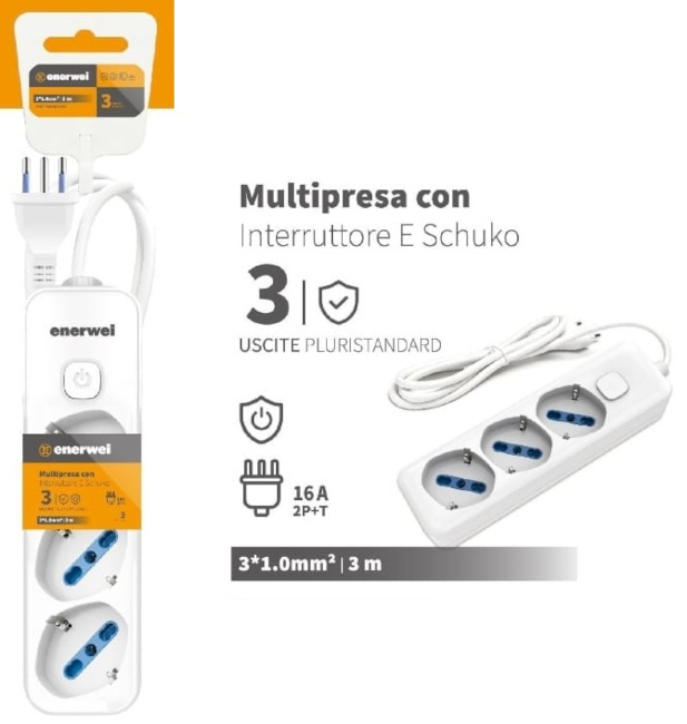 MULTIPRESA CON INTERRUTTORE A 3 USCITE 16A 250V MAX 3680W 3M