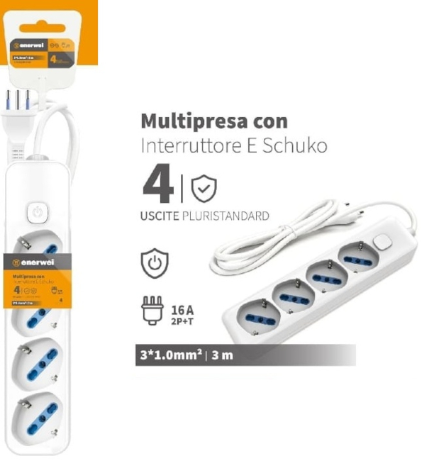 Numero di uscite: 4 prese pluristandard 16A 250V