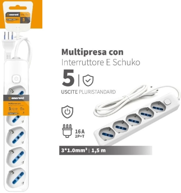 Numero di uscite: 5 prese pluristandard 16A 250V