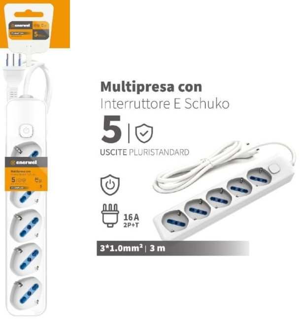 Numero di uscite: 5 prese pluristandard 16A 250V