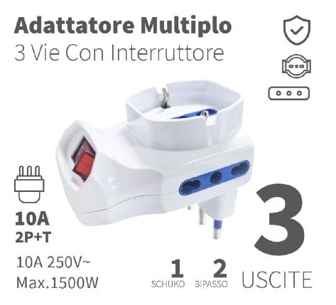 Adattatore con spina 10A e interruttore