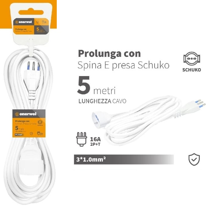 PROLUNGA CON SPINA E PRESA SCHUKO 16A 250V MAX 3680W 5M