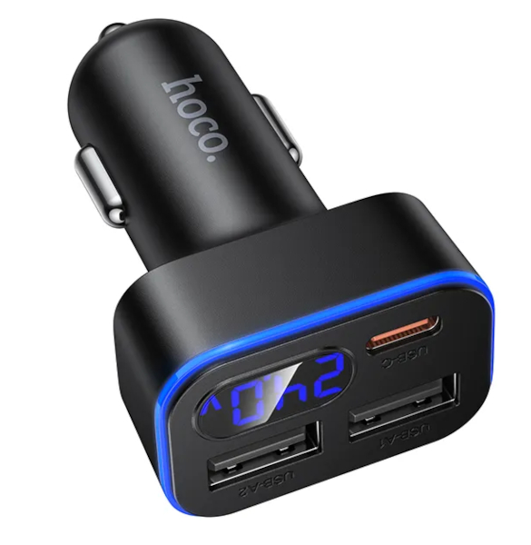 Il caricabatteria da auto Hoco Z63 con funzione di ricarica rapida e tripla uscita (2x USB e 1 x type-c) consente di caricare rapidamente i dispositivi mobili in auto