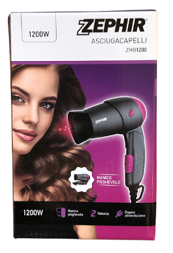 ASCIUGACAPELLI ZEPHIR DA VIAGGIO MANICO PIEGHEVOLE 1200W GRIGIO/FUCSIA